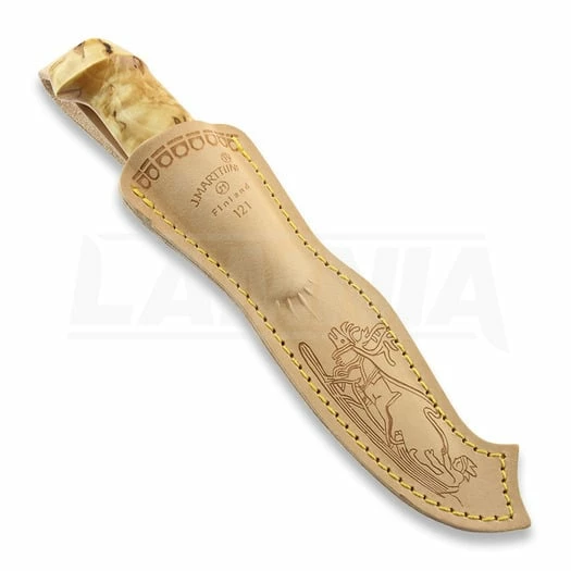 A traditional curly birch handle combined with the legendary sharp Lynx blade with the characteristic design feature of the slightly upturned blade tip. The design and decorations on the sheath also reflect our strong Lappish traditions.